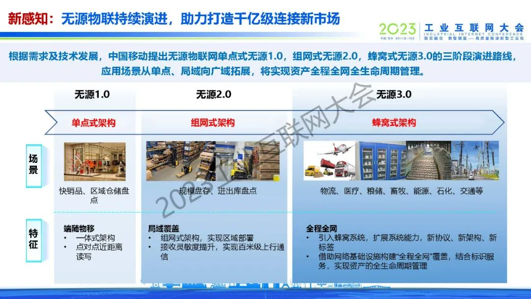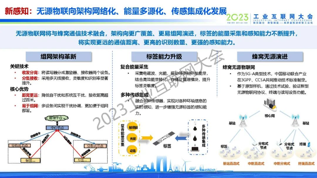 “無源物聯(lián)網(wǎng)將與蜂窩通信技術融合,架構向更廣覆蓋、更易組網(wǎng)演進,標簽的能量采集和感知能力不斷提升,將實現(xiàn)更遠的通信距離、更高的識別數(shù)量、更強的感知能力。“