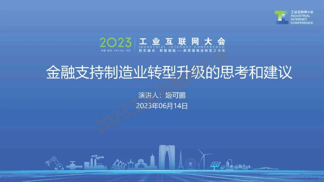 2023工業互聯網大會丨姬可鵬:金融支持制造業轉型升級的思考和建議