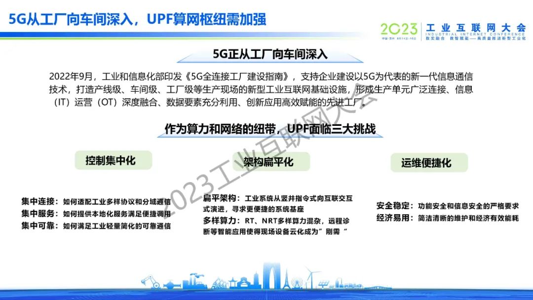 “5G+工業(yè)互聯(lián)網(wǎng)從輔助生產(chǎn)向融入生產(chǎn)邁進的過程中,UPF作為5G網(wǎng)絡與工業(yè)網(wǎng)絡互通的紐帶,需解決控制集中化、架構扁平化、運維便捷化的新需求,從而使能5G與工業(yè)互聯(lián)網(wǎng)的邊緣算網(wǎng)融合。“