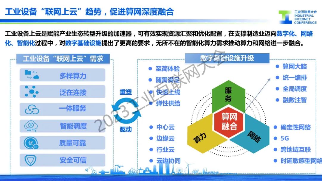 “工業設備上云是賦能產業生態轉型升級的加速器,可有效實現資源匯聚和優化配置,在支撐制造業邁向數字化、網絡 化、智能化過程中,對數字基礎設施提出了更高的要求,無所不在的智能化算力需求推動算力和網絡進一步融合。”