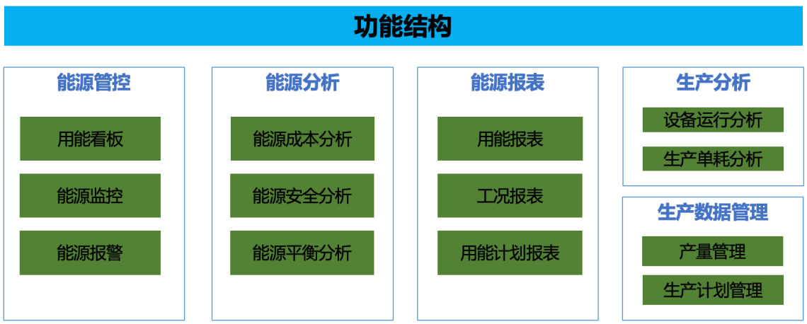 綜合能源管理系統是企業為生產過程把脈的數字化工具軟件,根據企業能源使用量、用能行為,為企業安全用能、精準用能提供能源管理服務。根據對能源運行數據的分析,對后續接入生產、控制等多維度系統,打通信息孤島,提供數據支撐及業務支撐。依據詳盡而準確的能耗數據幫助用戶掌握詳細的能耗分布狀況和能效水平,實現主動型、精細型的能源管理,以便建立長期、可持續化的能源管理體系,最終實現節能增效的目標。系統主要包括能源管控、能源分析、生產分析、計劃管理等功能模塊。