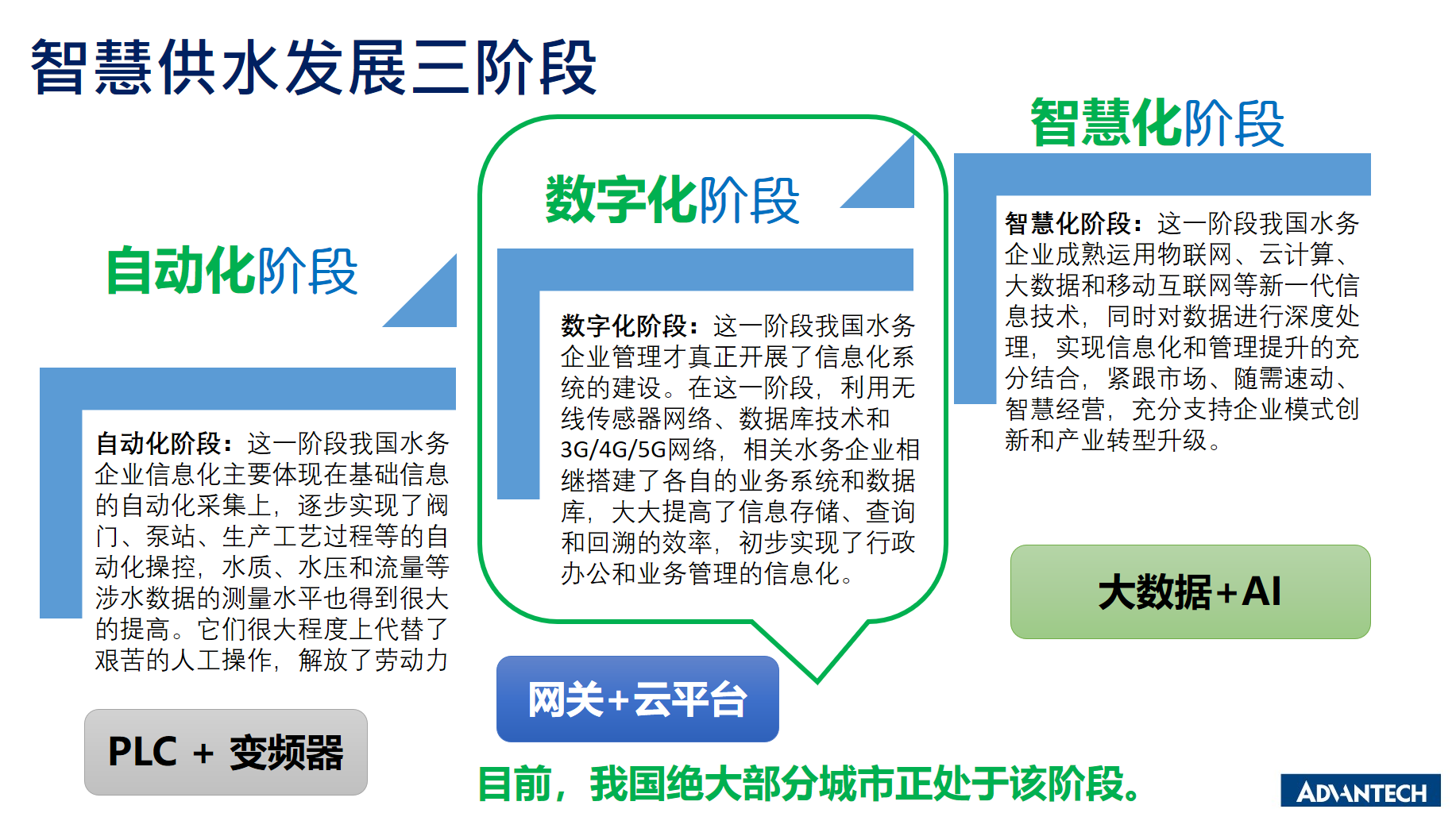 如圖3所示,目前大多供水管理系統還處于“數字化”階段,華科技會一如既往的協同專業伙伴,借助工業云平臺、AI、邊緣智能等技術與產品方案,共同加速推動供水智慧化應用落地。