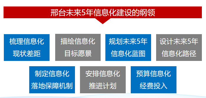 主要結(jié)合政府對邢臺智慧化愿景的初步設(shè)想,闡述城市信息化現(xiàn)狀與需求,規(guī)劃邢臺智慧城市建設(shè)目標,并將目標進行層層細化、拆解,針對每個細化目標規(guī)劃、設(shè)計相應(yīng)的建設(shè)內(nèi)容和實施路徑,明確相關(guān)信息技術(shù)手段及相關(guān)資源要素等內(nèi)容。