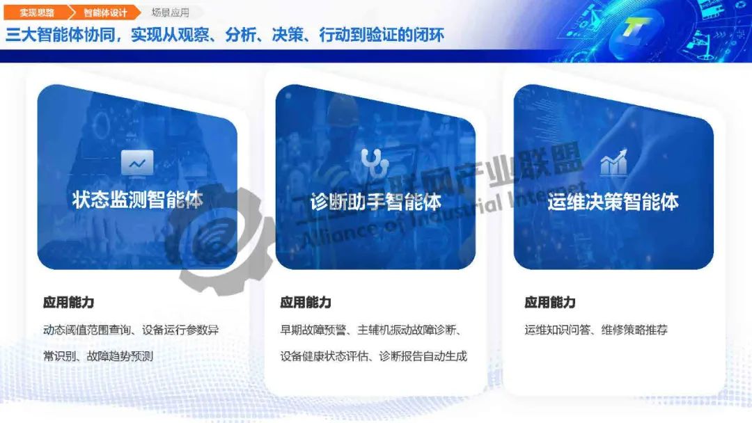 毛旭初介紹,工業大模型基于海量工業多模態數據訓練,具備工業知識推理、生產風險識別、工藝仿真優化等決策能力。瑤光工業大模型在小模型的基礎上加持大模型的生成、推理、調度能力,實現故障綜合判斷,三大智能體協同,實現從觀察、分析、決策、行動到驗證的閉環。