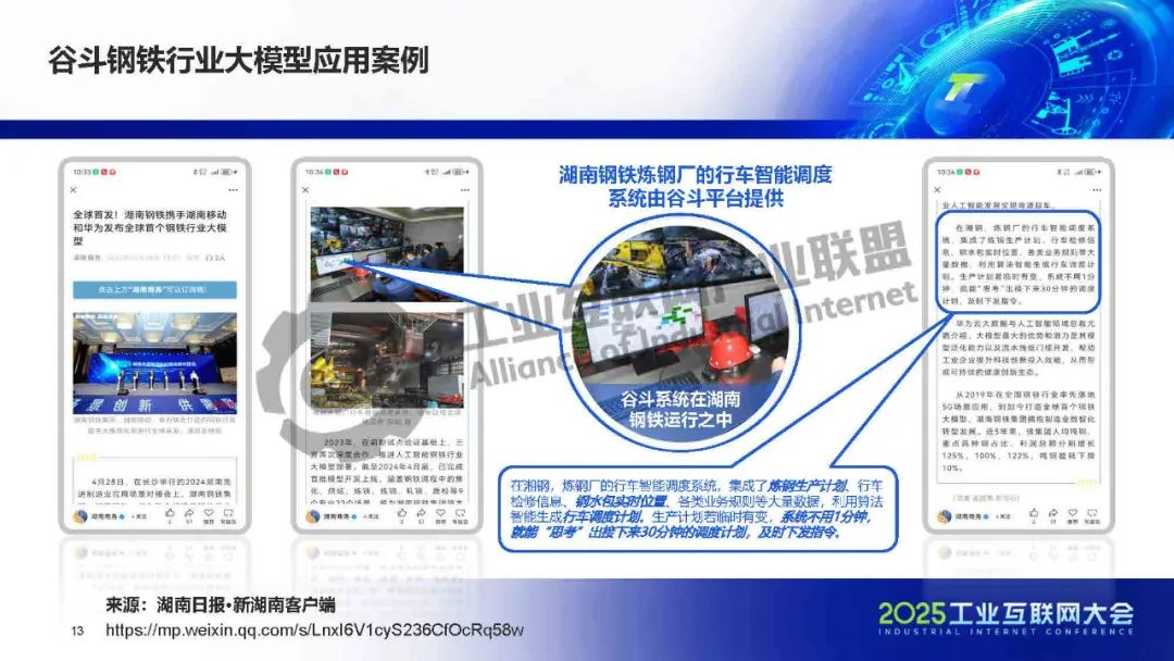 介紹,谷斗科技提出“大小模型融合”方案,以驅(qū)動工業(yè)智能決策發(fā)展。該方案結(jié)合大模型的邏輯推理能力與小模型的精確計算優(yōu)勢,通過平臺化工具實現(xiàn)資源優(yōu)化與智能決策。大模型負(fù)責(zé)交互感知與任務(wù)編排,小模型則處理具體業(yè)務(wù)規(guī)則,形成產(chǎn)業(yè)智能體,快速響應(yīng)緊急工單等動態(tài)需求。應(yīng)用場景覆蓋運(yùn)營助手、開發(fā)顧問、業(yè)務(wù)專家三大方向,支持低代碼配置與自動規(guī)則推薦,助力鋼鐵等行業(yè)實現(xiàn)全局資源優(yōu)化。谷斗獨創(chuàng)“平臺+模型”模式,兼顧標(biāo)準(zhǔn)化與靈活性,推動跨行業(yè)高效協(xié)同決策。