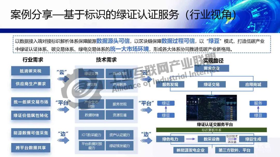 基于標(biāo)識的綠證認(rèn)證服務(wù)通過對接國家工業(yè)互聯(lián)網(wǎng)標(biāo)識解析體系,打通光伏行業(yè)設(shè)備資產(chǎn)可信采集傳輸鏈條,創(chuàng)建異構(gòu)光伏設(shè)備的統(tǒng)一數(shù)據(jù)模板,為分布式光伏設(shè)備頒發(fā)全球唯一且不可篡改的標(biāo)識數(shù)字身份證,生成光伏行業(yè)產(chǎn)品可信資產(chǎn)標(biāo)識,實(shí)現(xiàn)分布式光伏能源行業(yè)的可信資產(chǎn)管理、定位和監(jiān)測。