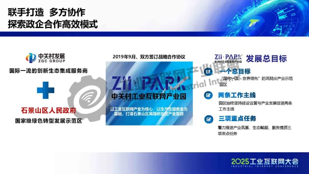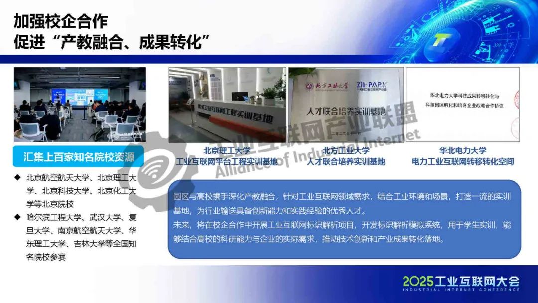 張文靜介紹,中關村工業互聯網產業園旨在打造“國內一流、世界領先”的高精尖產業示范園區,聚焦工業互聯網七大細分領域,提供八大產業服務空間和六大產業服務體系,包括基金支持、實驗室合作及產業大賽,推動技術創新與供需對接。通過校企合作,園區培養實踐型人才,促進產教融合與成果轉化,成為輻射京津冀、服務全國的工業互聯網創新策源地。