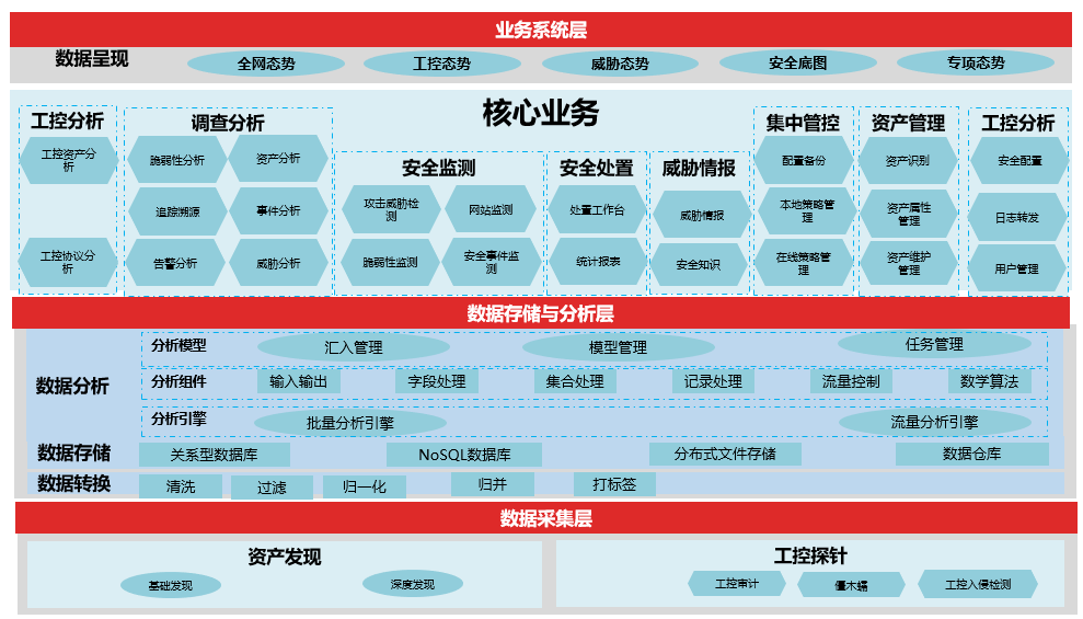 通過建設分布式工業互聯網數據采集系統數據處理及存儲系統等子系統,構建省級工業互聯網安全監測與態勢感知平臺和企業級態勢分析系統從監管層面實現省級工業互聯網安全全面及實時的監測