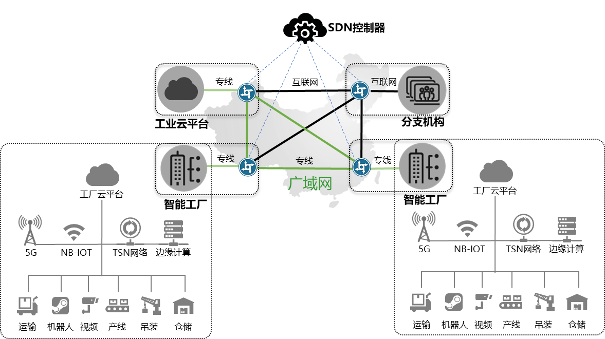 1)基于SDN、5G、NB-IOT等技術(shù)完成奇瑞集團(tuán)工廠外網(wǎng)互聯(lián)互通系統(tǒng),完成奇瑞集團(tuán)一二三四五廠、汽研院、實(shí)驗(yàn)中心等七大核心廠區(qū)(蕪湖),省外工廠(大連、鄂爾多斯),以及捷豹路虎(常州)、觀致(常州)、凱翼(宜賓)、新能源(蕪湖城南)四個(gè)獨(dú)立品牌工廠之間的網(wǎng)絡(luò)互聯(lián)互通改造;支持專(zhuān)線、互聯(lián)網(wǎng)、5G等多種類(lèi)型的互聯(lián)互通方式,支持基于SDN的網(wǎng)絡(luò)調(diào)度管理。基于NB-IOT等技術(shù)實(shí)現(xiàn)遠(yuǎn)程管理維護(hù)監(jiān)測(cè)。基于SDN、5G等技術(shù)完成基于帶寬網(wǎng)絡(luò)技術(shù)的業(yè)務(wù)協(xié)同應(yīng)用。