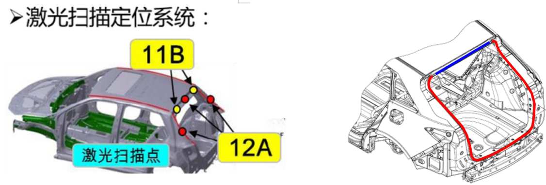 3D高速跟隨視覺(jué)檢測(cè)系統(tǒng)是一套視覺(jué)輔助系統(tǒng),通過(guò)3D激光引導(dǎo)定位系統(tǒng),識(shí)別車(chē)身置件的位置偏差,利用5G網(wǎng)絡(luò)將掃描的3D成型圖像傳遞給服務(wù)器,由服務(wù)器對(duì)車(chē)身置件的位置偏離進(jìn)行計(jì)算補(bǔ)正,將補(bǔ)正后的坐標(biāo)信息通過(guò)5G網(wǎng)絡(luò)傳遞給涂膠機(jī)器人,指導(dǎo)機(jī)器人依據(jù)車(chē)身置件的差異,精準(zhǔn)定位涂膠位置。